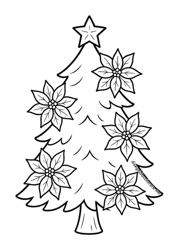 Questo disegno raffigura un elegante albero di Natale decorato con fiori di stella di Natale, simbolo tradizionale delle feste. La versione in bianco e nero è perfetta da stampare e colorare sia a scuola che a casa, per bambini e adulti. Con matite colorate o pennarelli potrai dare vita all’albero, arricchendolo di rossi brillanti e verdi intensi tipici del Natale. Un’attività semplice e divertente che può diventare anche una bella decorazione o un biglietto augurale personalizzato.