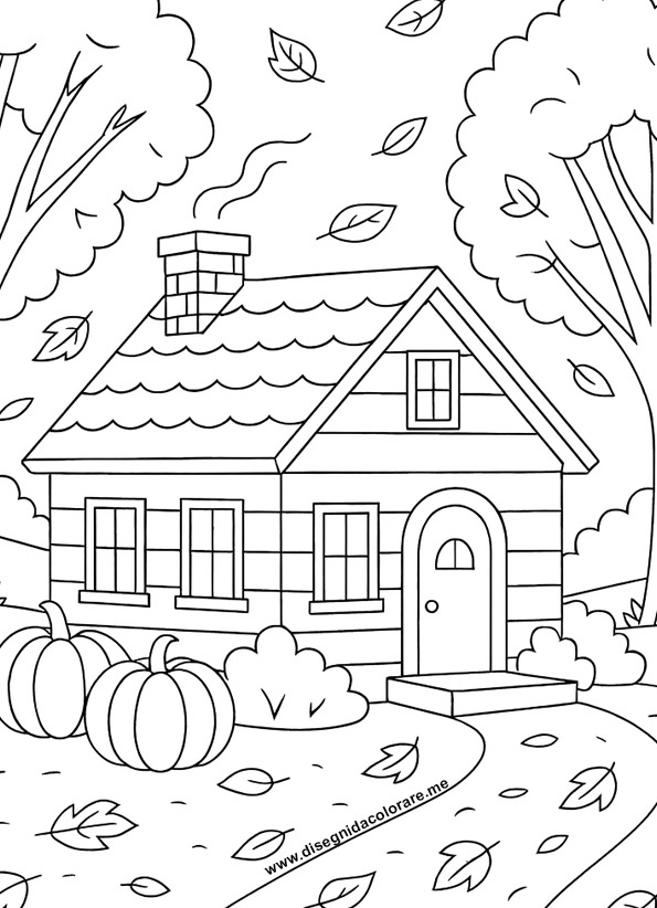 Casa con paesaggio autunnale da colorare