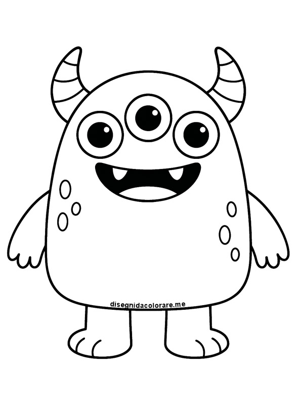 Il tratto essenziale in bianco e nero rende questo disegno facile da colorare e adatto anche ai più piccoli. Si può scegliere di colorarlo con tonalità classiche o inventare un mostro buffo dai colori insoliti, come blu, viola o verde brillante.